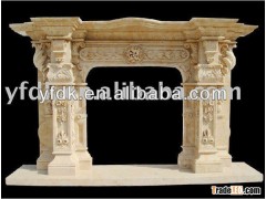 Hand Carved Marble Stone Fireplace Mantel With Statue Carved